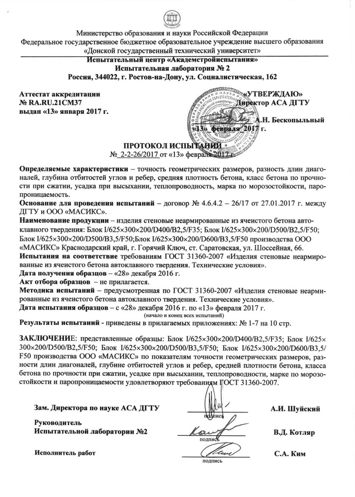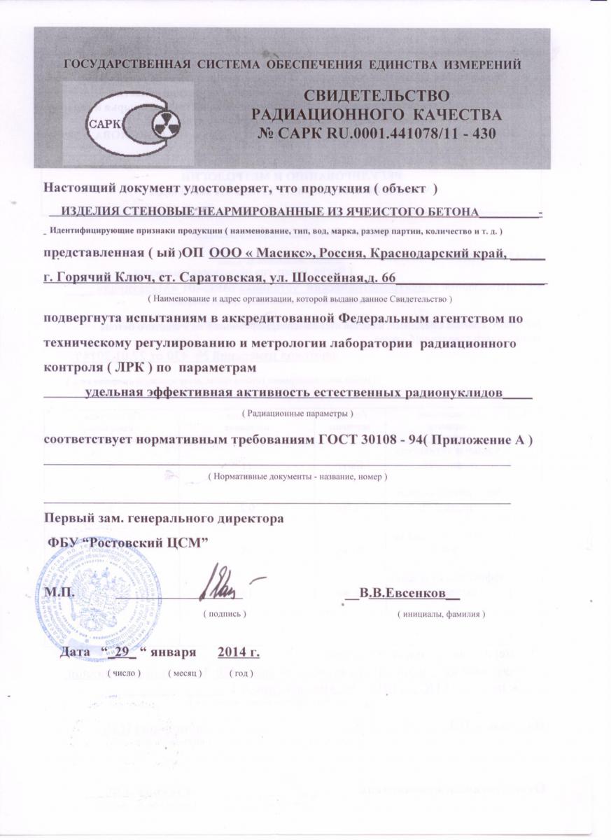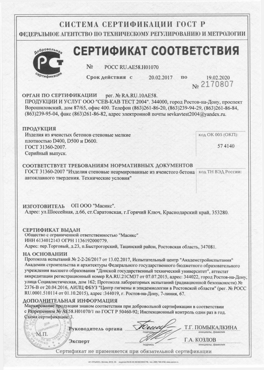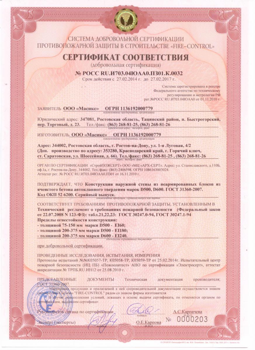 Сертификаты газобетона