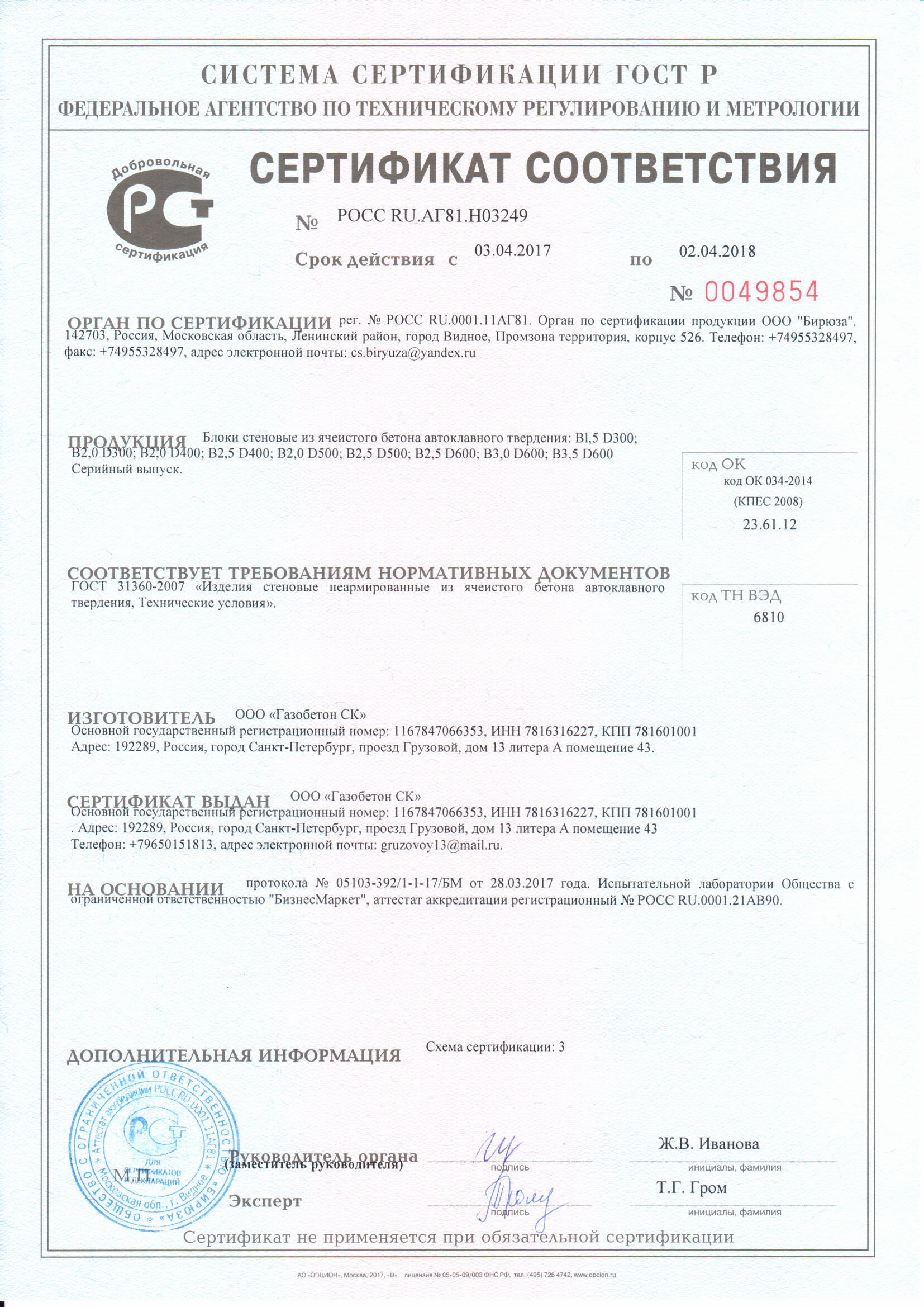 | Производитель | ГлавСтройБлок |